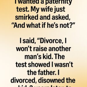 After our son was born, I wanted a paternity test. My wife just smirked and asked, “And what if he’s not?” I said, “Divorce, I won’t raise…