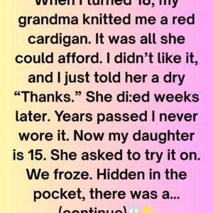When I turned 18, my grandma knitted me a red cardigan. It was all she could afford. I didn’t like it, and I just told her a…