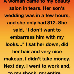 She came into the salon with swollen eyes, a crumpled twelve dollars, and a whispered plea: “Please don’t let me be invisible at my son’s wedding.” I…