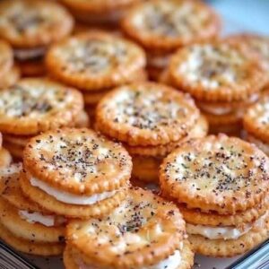 Ritz Cracker Party Sandwiches are an easy and crowd-pleasing appetizer. With just crackers, deli ham, Swiss cheese, and a buttery glaze, they bake into warm, savory bites…