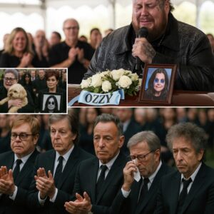 “The Last Note for a Legend” — On a Misty Morning in Birmingham, the World Gathered to Honor Ozzy Osbourne’s Final Farewell Beneath gray skies and ancient oaks, thousands came together—not for grand speeches or orchestras—but for one raw, soul-stirring moment. Jelly Roll, tattooed and visibly shaken, took the stage, sitting down at a lone piano to play “Dreamer,” a haunting tribute that cut through the silence with every imperfect, aching note. As tears streamed down Sharon Osbourne’s face, and Kelly and Jack stood united in grief, the crowd held its breath, feeling the weight of a life lived loud and full. When Jelly placed a single red bandana on Ozzy’s casket and whispered, “You showed us how to survive loud,” the moment transcended words. No applause followed—only a sacred stillness, an echo of a final song proving that legends don’t fade away. They live on, forever loud.