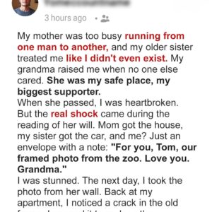 When my grandmother Grace died, my mother and sister walked away with the house and the car, leaving me with nothing but a framed photo of Grandma…