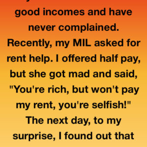 We’d always been steady—two salaries, modest house, savings intact—so when my mother-in-law called about rent, I offered half without hesitation. She snapped, called me selfish, and hung…