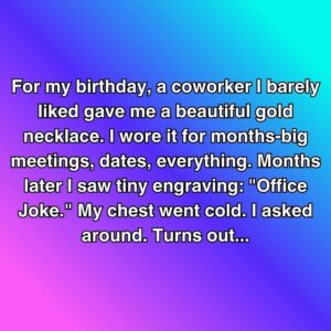 I got a gold necklace from a coworker I barely liked — glittery, flashy, and oddly charming. I wore it everywhere. Months later, I spotted an engraving…