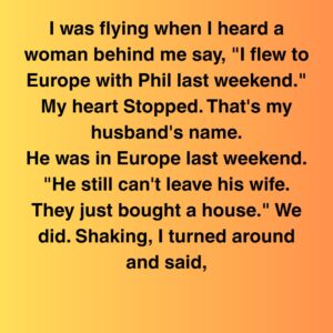 On a transatlantic flight, she overheard a woman casually brag that she’d flown to Europe with “Phil”—her husband who’d just bought a house with her. Shocked, she…