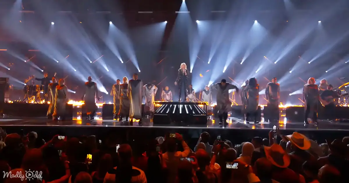 Her song “World on Fire” is not just a song but a worldwide anthem. The performance has a special highlight, with her wearing a dress depicting a map of the world, symbolizing a global message. With this song, the legend voices her thoughts about what is going on in the world unapologetically and boldly. Dolly’s performance is not just for entertainment; it is a call to action for a better world.