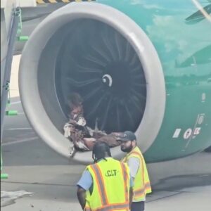 HORROR ON THE TARMAC: A Frontier plane’s engine shredded…
