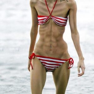 The Lady in the Bikini, Feeling a Little Bit Nervous: As She Steps Hesitantly onto the Sunlit Beach, Eyes Flickering with Uncertainty, Heart Racing with Self-Consciousness, She Faces the Crowd, Waves, and Warm Sand, Wondering How She Will Carry Herself Through a Day of Sunshine, Attention, and Unexpected Moments.