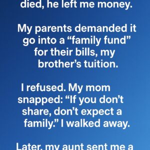 When my Grandpa passed on, he left me money. My parents insisted it should go into a “family fund” for their household expenses and my brother’s tuition….